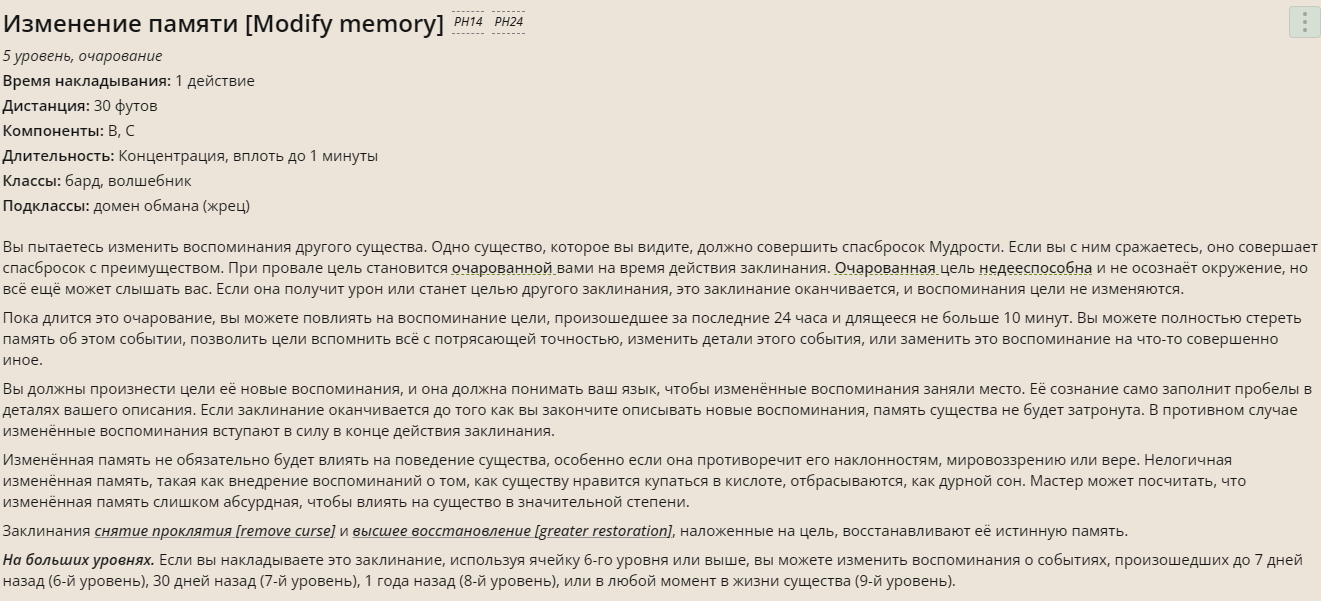 Ну так страшный человек предположил, что было использовано именно оно. Или не оно, но это первое что я нашел по 5 редакции, о которой говорил страшный человек. Я потому и вопрос задавал, что не нагуглил заклинания с тем же эффектом что у Фобоса.