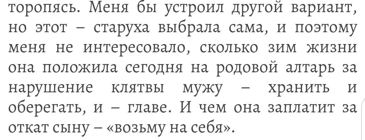 Не верю, что старуха самоубилась. Она в пустыне столько народу положила чтобы самой выжить- и внука любимого, и Лейле...А может её всё-таки обраткой накрыло от нарушенных клятв?