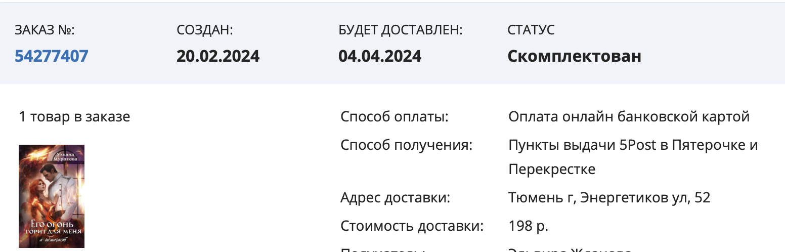 Ура! Ульяночка! Мне сегодня пришла хорошая новость с ВООK24! Заказ уже укомплектован! Значит скоро прийдет.
