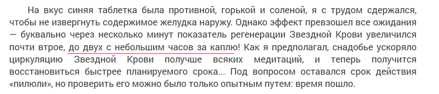 Я прошу прощения, но вот тут выглядит не корректно. Он все таки каплю регенерирует за два с небольшим часа.