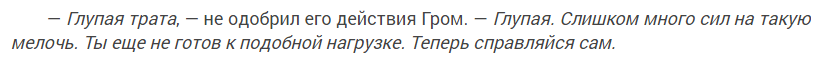 В главе "Облако" Вир во время погони несколько раз использовал светлячков. После исцеления гром сказал ему: