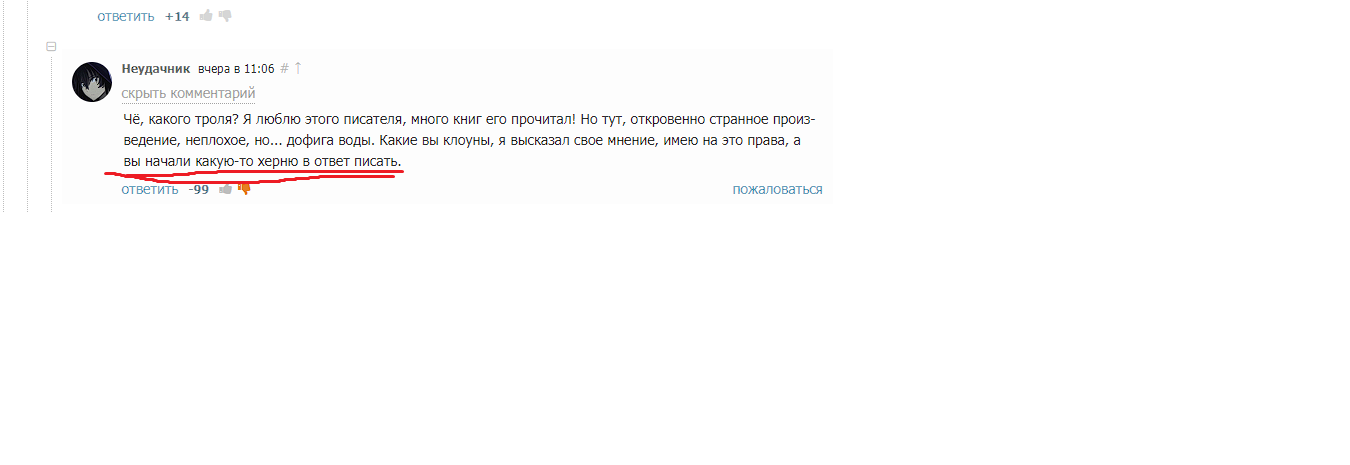 Вы пишите в комментариях под работой автора, ему приходят уведомления, он читает их и ему не нравится видеть под своей работой написанной по 3,5 редакцией, мнение абсолютного левого человека, которого не просили тут писать. Поэтому ваше претензия к тому, что Автор произведения под которым вы развели спор, влез в него, говорит лишь о том, что вы не осознаете собственное положение левого челика в интернете.