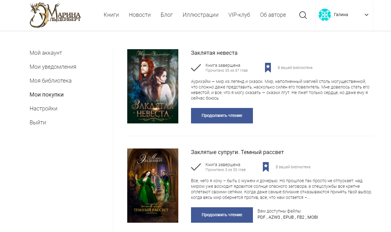Здравствуйте. Вы писали, что планируете закрыть свой сайт. У меня там несколько приобретенных книг. Я все их скачала кроме Заклятой невесты (там нет возможности скачивания этой книги). Может есть возможность открыть мне бесплатный доступ к чтению здесь или на другом ресурсе, или открыть скачивание на вашем сайте. Я уже просила об этом на том сайте, но, пока ответа не получила. Спасибо.