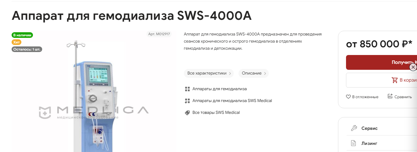 Не аппарат столько стоит а месячный курс диализа стоит миллион рублей! в платных клиниках сутки на диализе стоят 30- 200 тысяч рублей