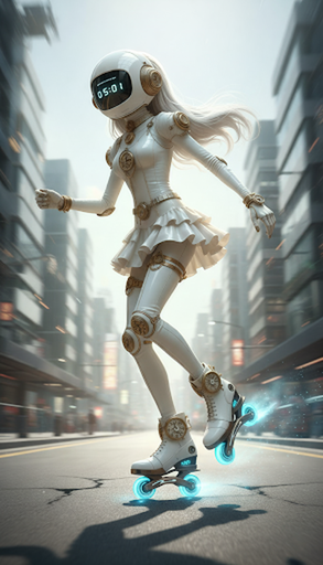 Хм... Кстати, а она уже умела кататься на роликах или специально училась, чтобы сделать их частью своего снаряжения? (Попытался прицепить ролики с рисунка к сгенерированной ранее картинке...)