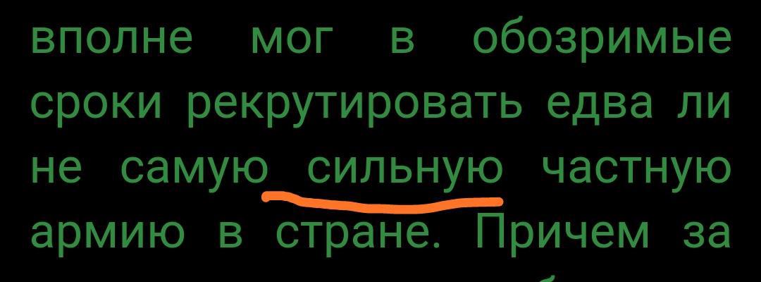 По контексту, думаю "не самую слабую" частную армию в стране.