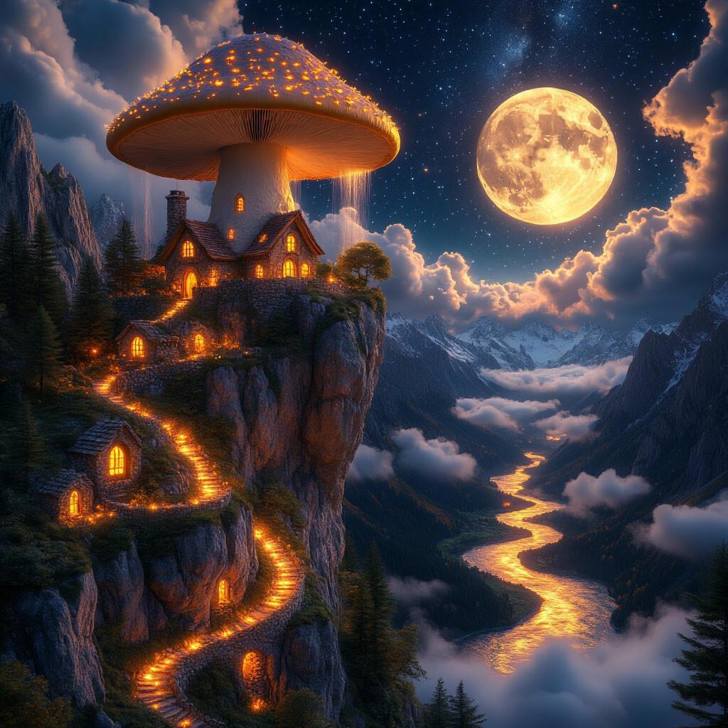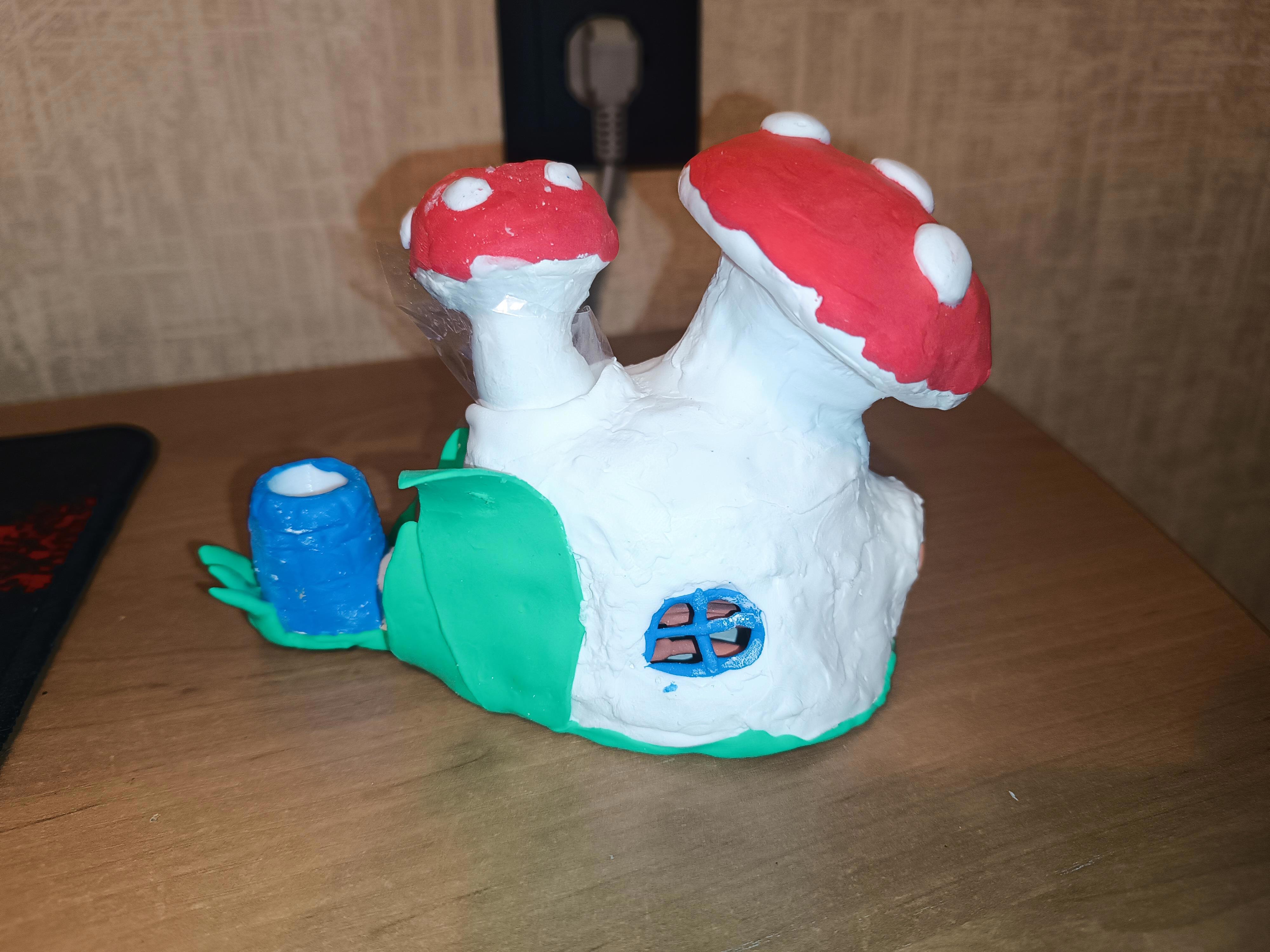 Я хотела сделать домик из полимерной глины, грибной, чтобы он дым пускал! Бабушки нет, но я поеду зимой к тётке и хотела к надписи на ограде добавить "2025", а лестница вверх ступеньки, от корабля вверх и там незаметно спрятать домик и тебе фото прислать, чтобы оставить тебе там послание