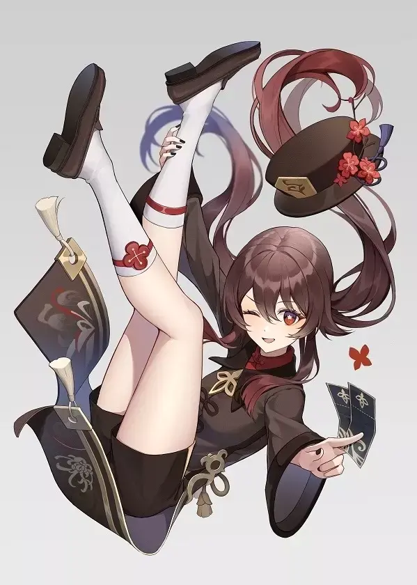 Ху Тао, наследница клана Тао, что специализируется на упокоении мертвецов и призраков. Отсылка на персонажа из геншин импакт.