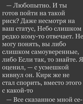 2. Когда я говорю об отсутствии вычитки, я имею в виду не опечятки, ошибки или автозамену слов. Я говорю о том что в некоторых главах отсутствуют куски предложений или абзацев. Может кому и интересно додумывать, что бы туда написал автор, но я предпочитаю читать уже написанные истории, а не дописывать их самостоятельно.