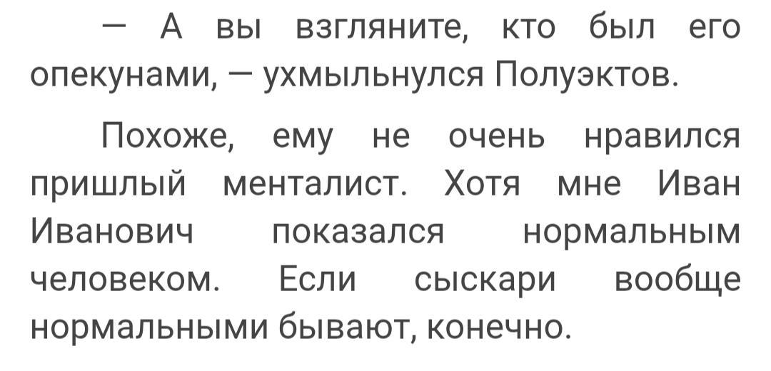 Однако, мне кажется, забылось 3-е предсказание. Миха должен решить судьбу деда. Три брата менталиста сильнейшей державы должны порешать любую угрозу из вне. А вопрос с дедом и престолонаследием, как внутригосударственная проблема - остаётся открытым. Опять же, в этом томе Урук Аста про подаренное оружие говорит, как подаренное от царя. Если Михе предсказано быть царём, может-ли действующий царь ( пусть пока он в саркофаге), изменить потом порядок наследования?