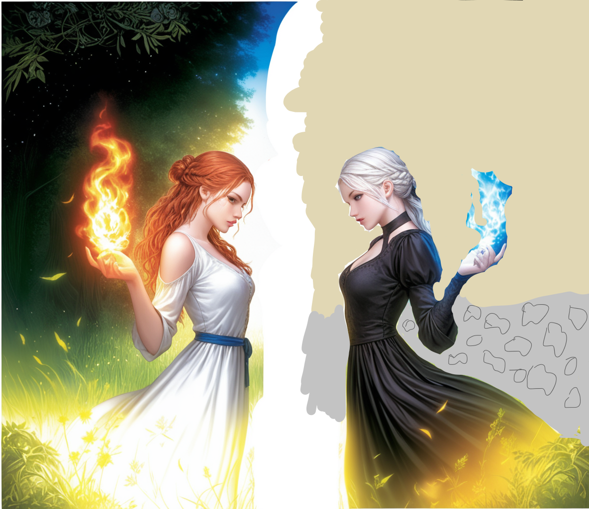 А) Пытаться по максимуму приблизить сцену к ТЗ в самой нейросети, потом править вручную в любой программе, в которой можно рисовать, например хотя бы в Пейнте, и доделывать в Стейбле, подгоняя под общий стиль в img2img и Инпейнте.