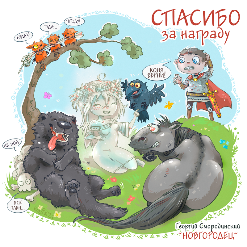 Попытаюсь объяснить. Так сделать трудно. Труднее чем шел шел - встретил кого-то подумал ну его на... и пошел дальше (ускакал, свалил в подпространство, скрылся в невидимости или все же подрался). Такие сцены продумываются ОЧЕНЬ заранее. Примерный рисунок боя и действия противников я знал уже тогда. когда Велеслава сказала, что ГГ может сам вернуть хозяина леса.