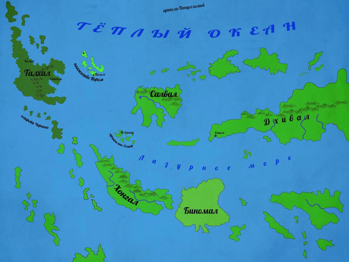 Карта части дхивала будет. Черновой вариант возможно выложу вместе со следующей продой. Пополняться будет по мере написания, хотя там скорее карта одного острова будет нужна, возможно и её в схеме набросаю.