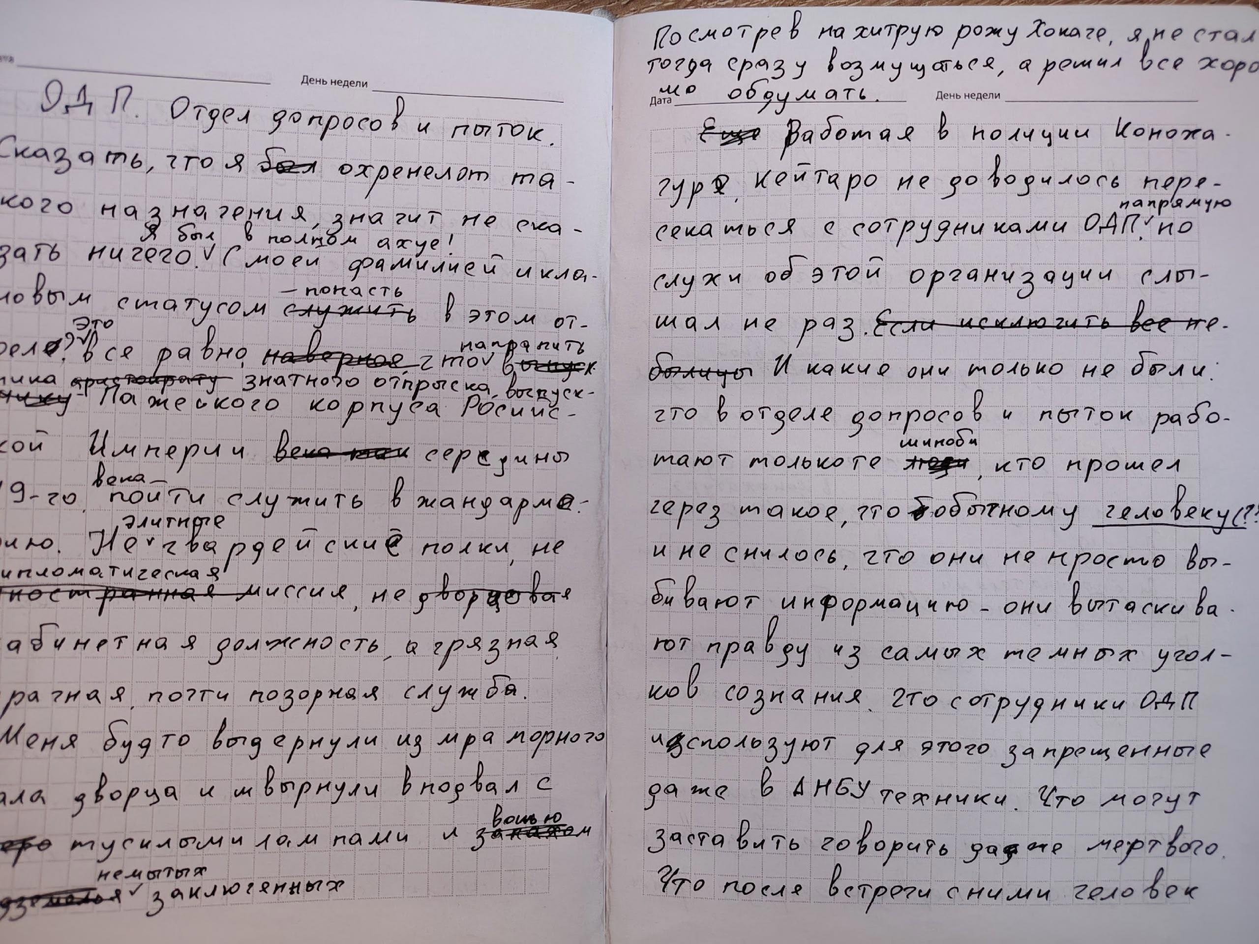 В общем, возникла у меня неприятная ситуация. Если честно, когда слышал такую ситуацию от авторов, которых читаю, всегда считал гнилой отмазкой, пока и со мной такое не произошло. Несколько дней назад мой компьютер при включении щелкнул и погас. Я разобрал его и обнаружил мертвый БП. Заменил блок, но возникли другие проблемы. После диагностики, как мне сказал специалист, мой блок сгорел, но перед этим как-то дал напругу на внутрянку (если честно, не сильно понял как это произошло, но факт есть факт). По итогу, сгорел жесткий диск и встроенная в материнку звуковая карта, при том, что с остальной внутрянкой системника все в порядке (в том числе, ssd М2). В принципе, не такая уж и проблема, если б не куча информации на диске. А там было много всего, в том числе, несколько уже написанных глав второй книги "Кейтаро". Сегодня отдал винчестер знакомым ребятам из отдела К, обещали попробовать достать инфу, как у них появится время, но когда это будет? В общем, в данный момент пытаюсь восстановить текст по некоторым бумажным черновикам и памяти. С прологом более-менее получилось, завтра возьмусь за главы. Есть все же надежда на восстановление информации, но если это и будет, то, скорее всего, не скоро. Потому ежик будет плакать, колоться, но все же жрать кактус. А я буду восстанавливать написанное. Быструю проду не обещаю, но написанное начну выкладывать сразу. Надеюсь, через пару дней уже что-то будет.