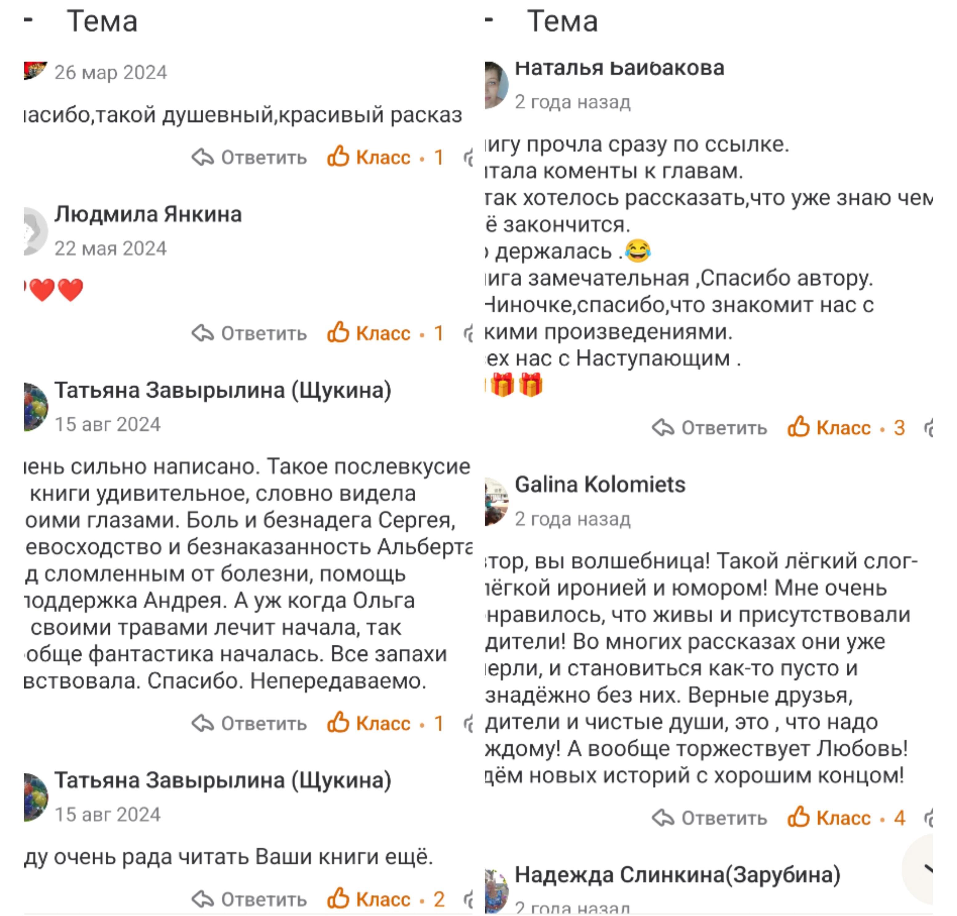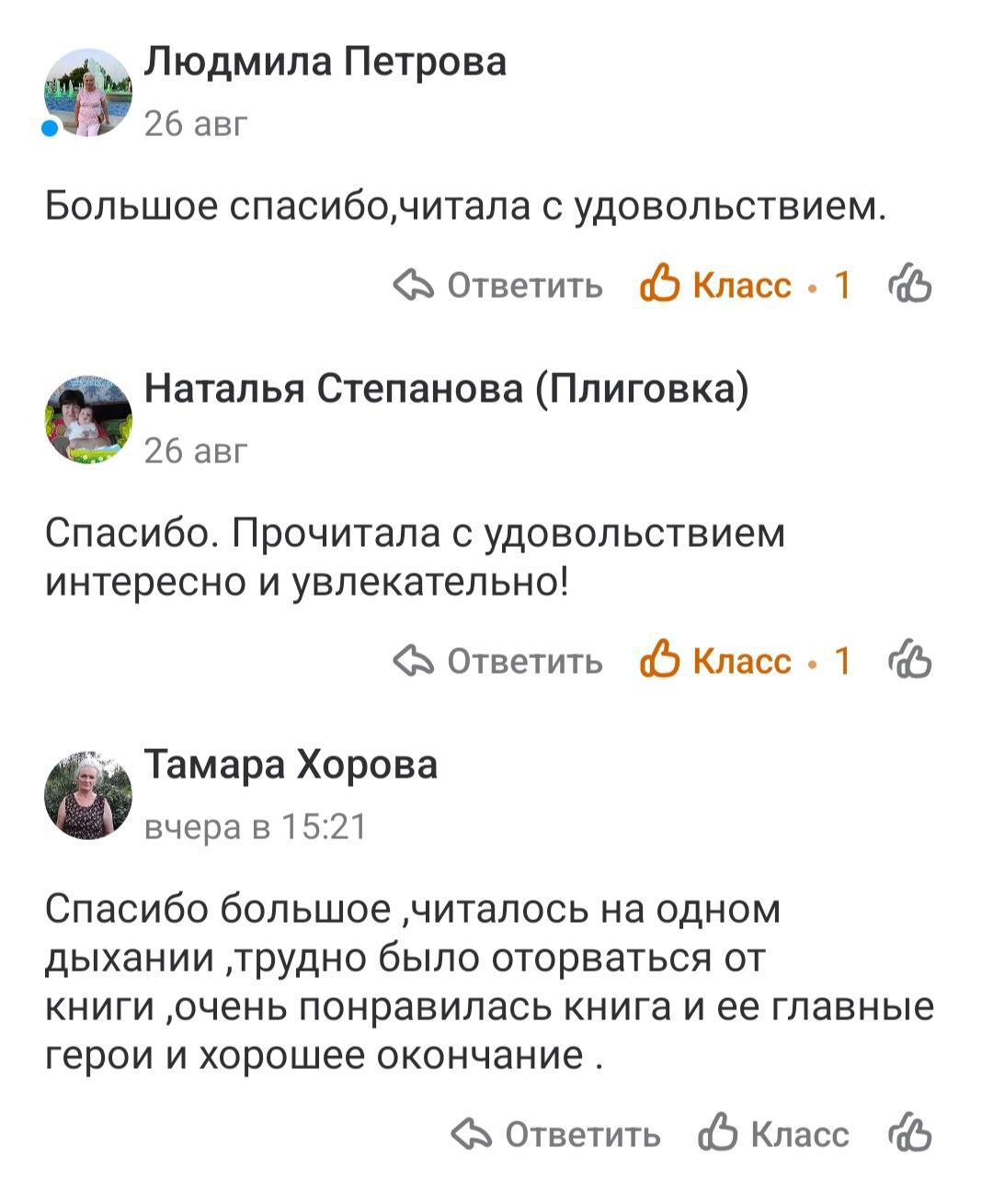 Прочитали в группе вашу книгу. Спасибо за подаренные эмоции и настроение. Моим читателям очень понравилась история, хочу поделиться с вами комментариями.