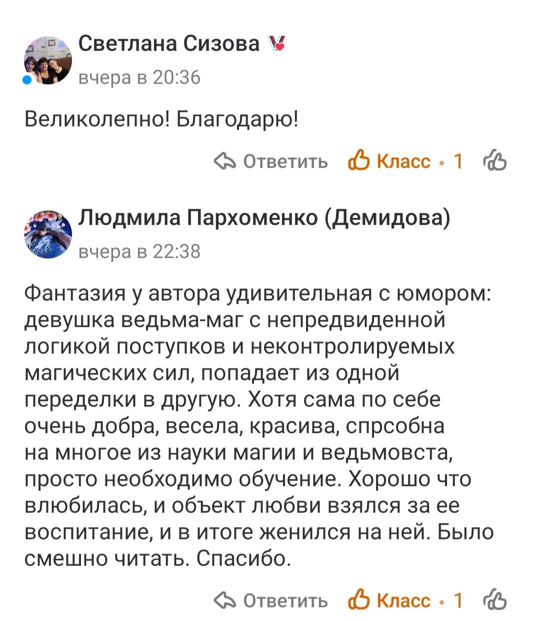 Спасибо за веселую историю! Прочитали ее в группе, всем очень понравилась. Читатели передали вам свои хорошие отзывы и благодарность за позитив. Все не могу здесь разместить, но одно фото прикреплю. Успехов вам и вдохновения.