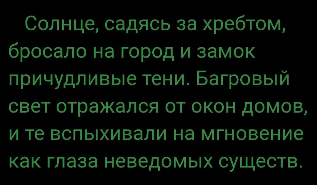 Впереди хребет и на нем Черный замок и город, солнце садится за хребтом. Каким образом путники видят, как солнце отражается в стеклах окон домов?
