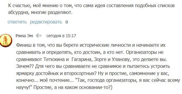 К счастью, моё мнение о том, что сама идея составления подобных списков абсурдна, многие разделяют.