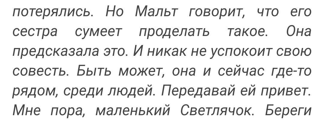 И еще в копилочку о теории родства Лавиани и Вира. Лавиани рисовала не Нэ, т.е ей не передалась жестокость и испорченности Четвёртой. Далее у неё рождается сын с даром, причем даром светлым, Нэ говорит, что если будет его учить, у неё получатся светлячки. И вот появляется Вир, о его родных ничего не известно, но дар у него тоже светлый, не искаженный.