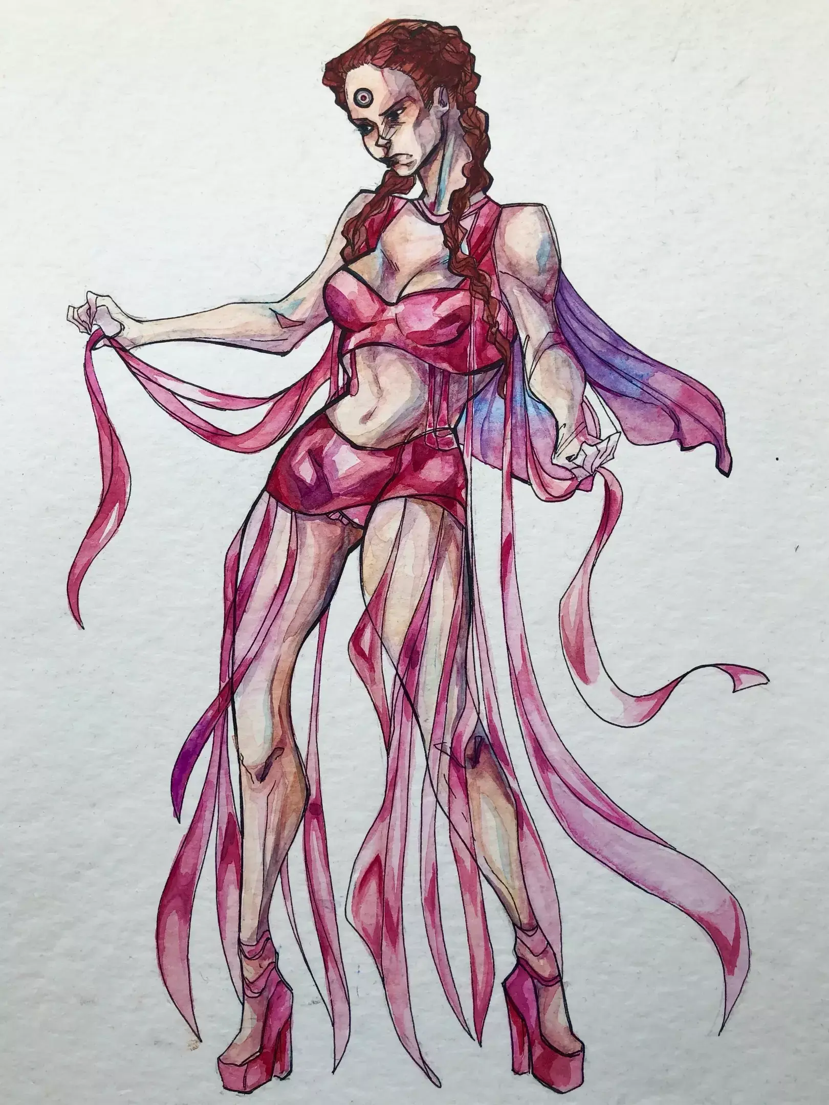 В превращении могу показать арт от читательницы(но волосы все же короткие).