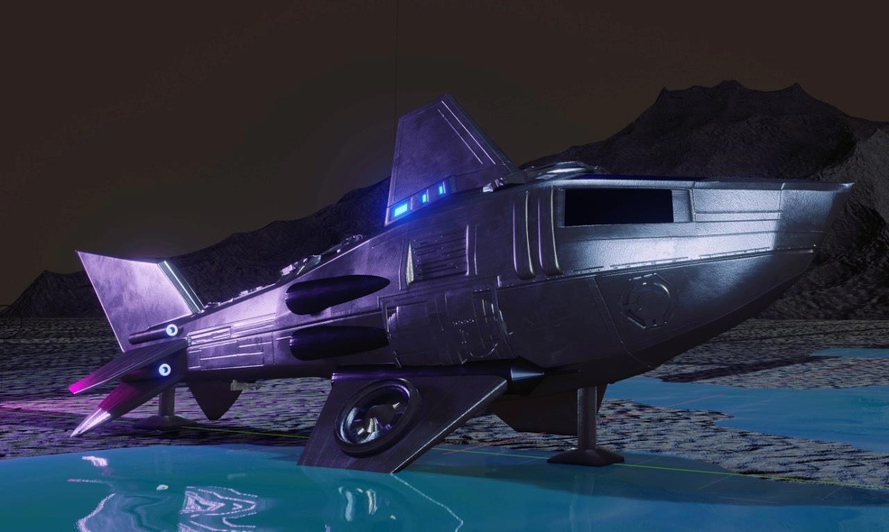 Наверное, все-таки корабль. Осьминог - это текстура по большей части, основной меш не сказать, что очень сложный. А вот с кораблем пришлось повозиться. По сюжету он в форме акулы выполнен, но с первого раза все равно попасть в задумку не удалось