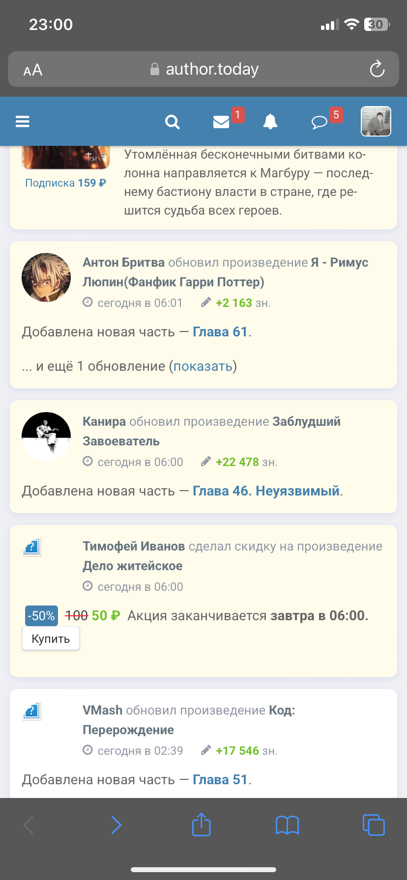 Народ подскажите а вам оповещения о выходе новых глав приходят то? а то автору уже вторую главу не приходят.