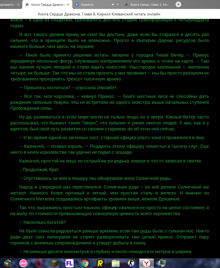 Lineage 2 за гнома играл, и обокрал пол королевства, при этом ничего не делая. О ещё одно клише, только наш главный герой, необычный, и реально думает, и ищет всякие закуточки, а другие игроки, бродят и фармят. А так книга получилась хороша, прочитал за неделю, так-как долго откладывал, а зря. И напоследок, нужно больше золота! Удачи.