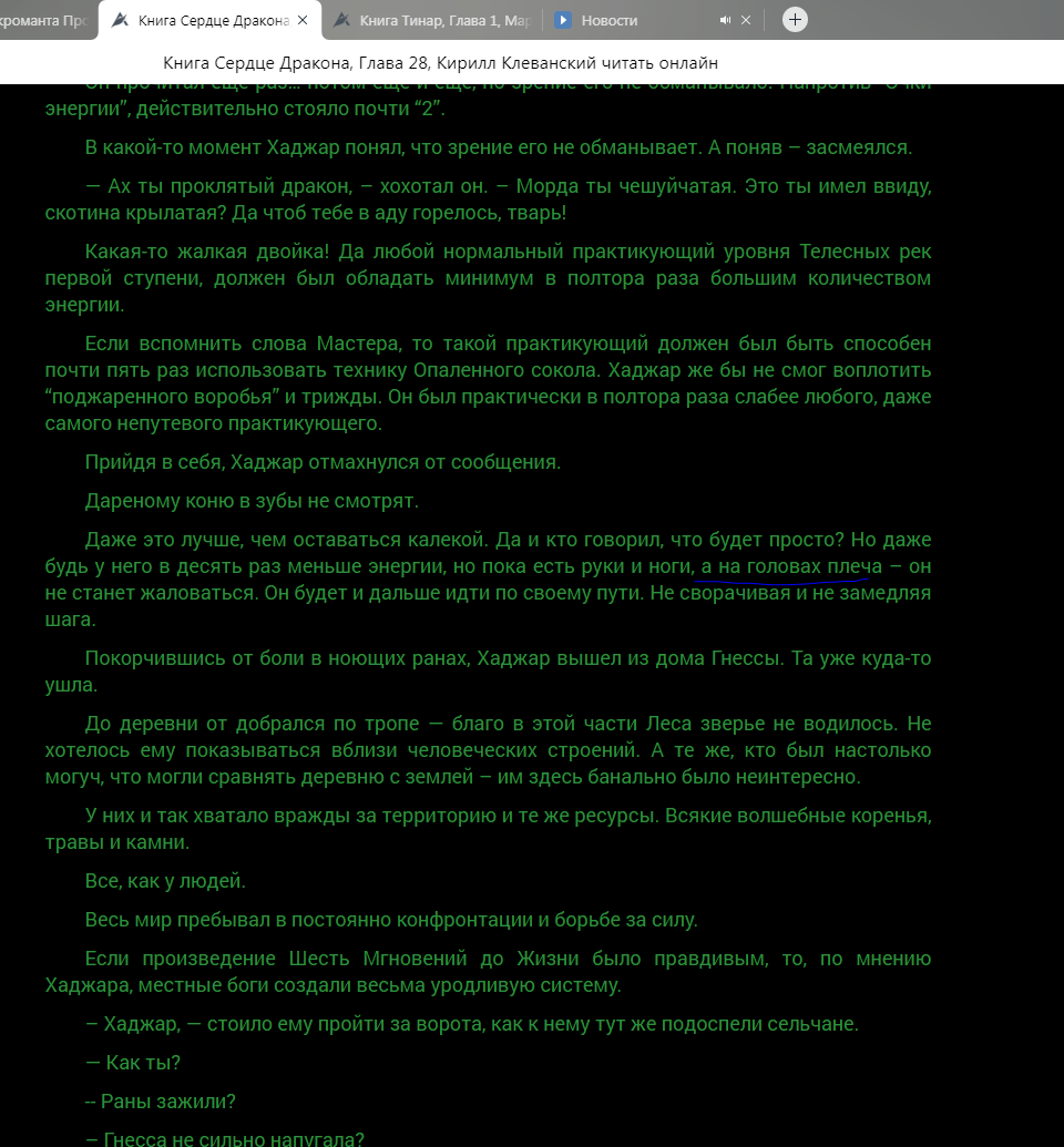 Прочитал всю книгу,решил тут оставить свой комментарий. По поводу ошибок орфографических или других уже не буду, так как другие это уже ясно высказали, и сам я не очень дружу с запятыми, тире и т.д. Выскажусь насчёт отношения гг к девушкам, он постоянно помогает, независимо от ситуации, так которая убила, он по сути должен её сдать или типа того. Но нет он ей поможет, и насчёт прокачки гг я тут всё выскажу!!! Полное пофигизм насчёт своего перса, не хочет качать, а когда надо то просто забивает через часа 2. И да, кстати насчёт своих абилок насчёт удушения, отравления и чего-там не помню просто.