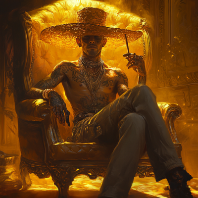 Данко "Мистик" Херцег с дудочкой-ключом от тайных троп. К сожалению, почему-то ИИ отказался дальше редактировать этого дядю. Поэтому шляпс на китайскую соломенную треуголку изменить не получилось.