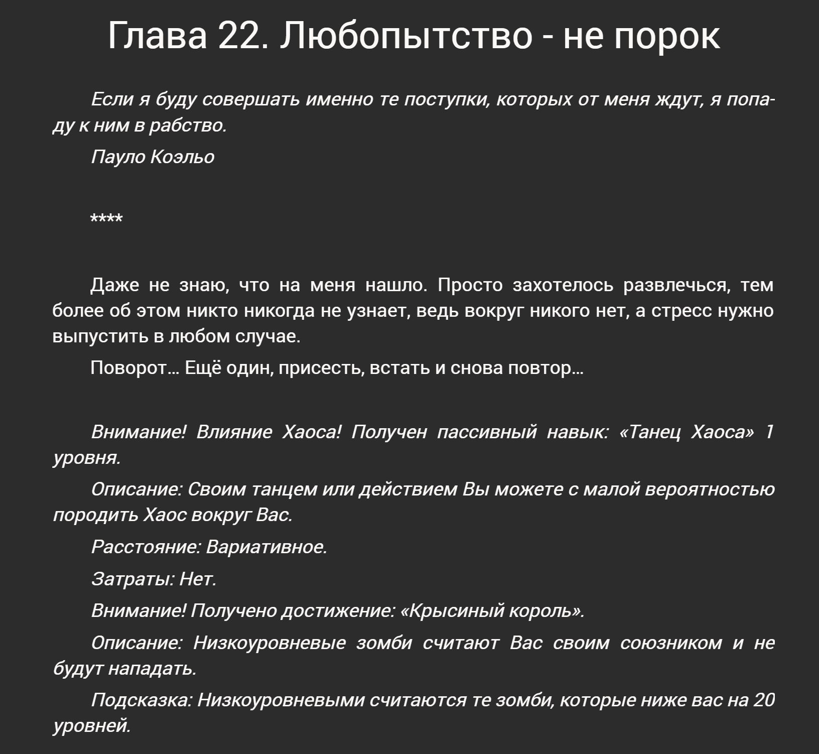 Читаю я тут главу... и понимаю на предыдущей я видимо был сильно ... эээ невменяем. А откуда и когда у него такой навык? Что то кроме танца от хаоса я нечего не помню (