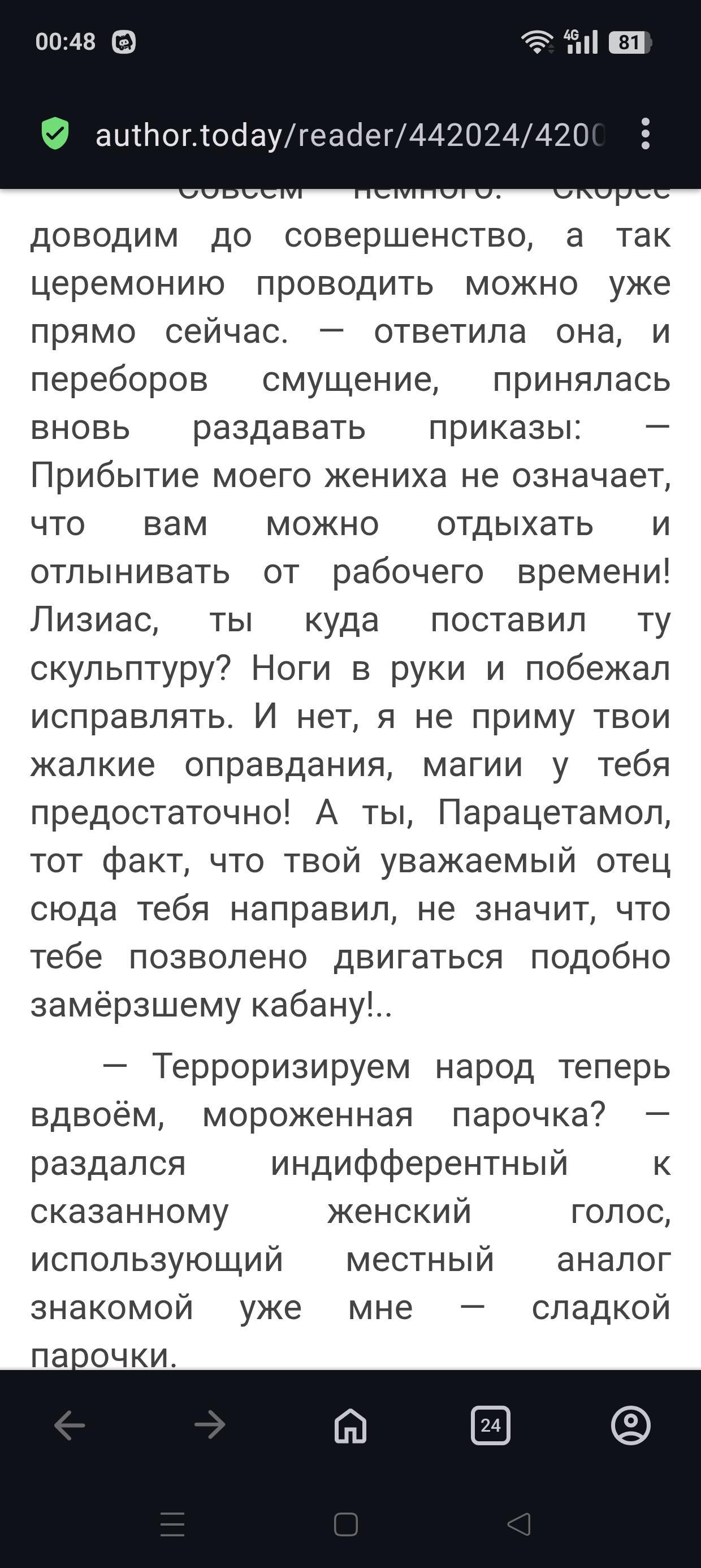 А так классно и интересно, хоть и несколько МСно, но у вас получился хороший МС от которого нет желания удалить книгу из "Читаю" и закрыть страницу. Автору бобра и позитива.