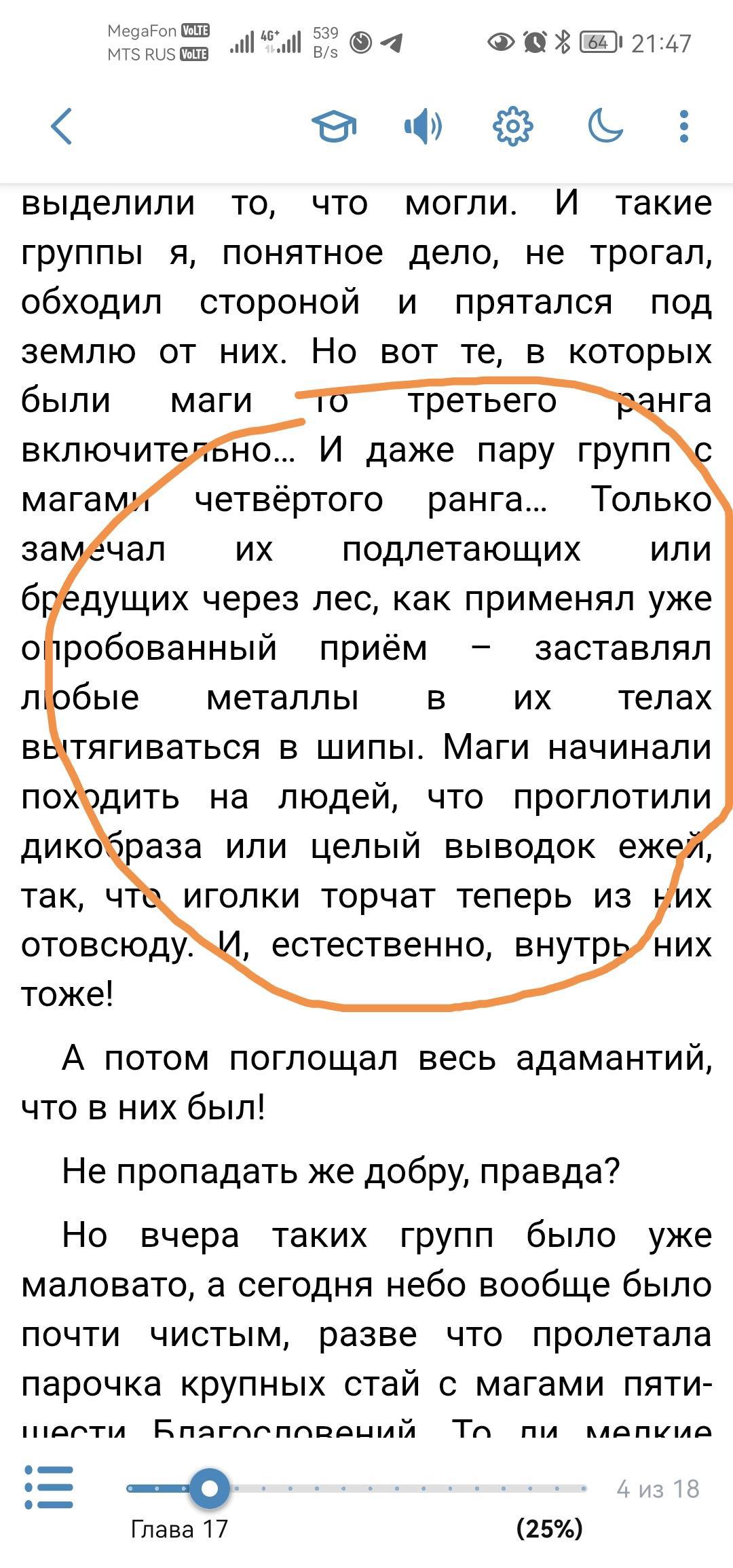 4. Меч боевой специализированный МБС. Смысл в адамантиевом, или мифриловом покрытии режущей кромки и руне\заклинании (автору виднее) триггере. При соприкосновении кромки с препятствием, срабатывает триггер, около плоскостей лезвия появляются порталы и порталы появляются, например, через 10 см от лезвия по ходу его движения, откуда это лезвие и вылетает, проникая сквозь защиту и разрезая врага. Оборудуется камнями-аккумуляторами, от 4 до 10++ рангов. Так как силу пробить можно только большей силой, если у мага 4 благословения, то, допустим, нужен минимум, камень 4го ранга. Хотя ранги камней и благословения не связаны, это мои додумки и автору виднее. В обще чтобы пробить энергию защиты, тупо нужно больше энергии, принцип лома.