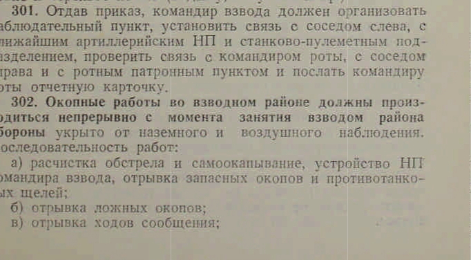 Неправильно в в Боевом Уставе пехоты РККА просто не было отдельных пунктов про инженерное оборудование позиций тем не менее в нем упомянуты основные и запасные позиции , ходы сообщения и скрытые подходы, по умолчанию предполагалось ,что командир не совсем дурак и самостоятельно разберется ,что и где копать. - https://www.prlib.ru/item/399088