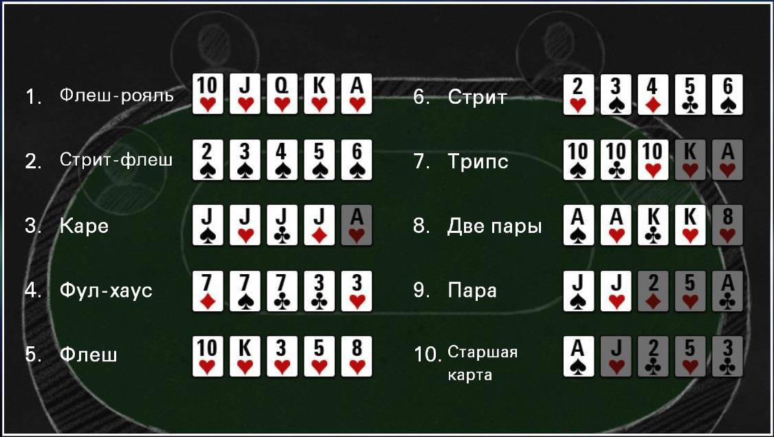 Флеш-рояль - пять карт одной масти, идущих по порядку от десятки до туза. Если масть разная, то это стрит.