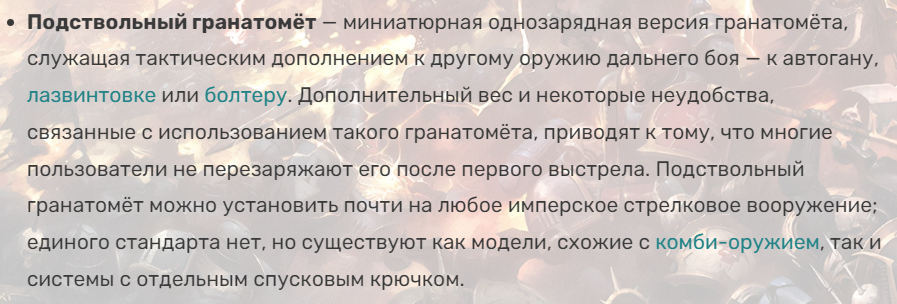 Пишем в поисковой строке браузера: вархаммер подствольник. Заходим на соответствующий ресурс, смотрим: