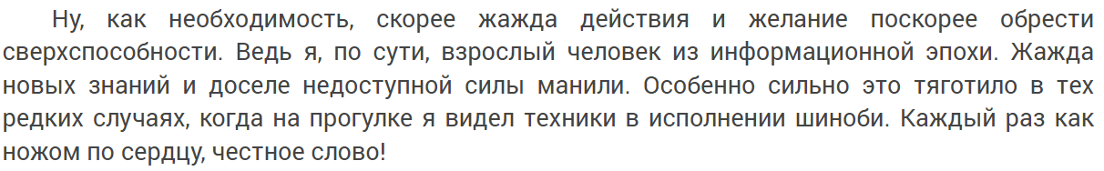 И влияние это не должно быть жалким, типа зарубить много душ или хлестать всюду аурой реацу, словно завтра не наступит. Нет, это должно быть что-то грандиозное, великое.