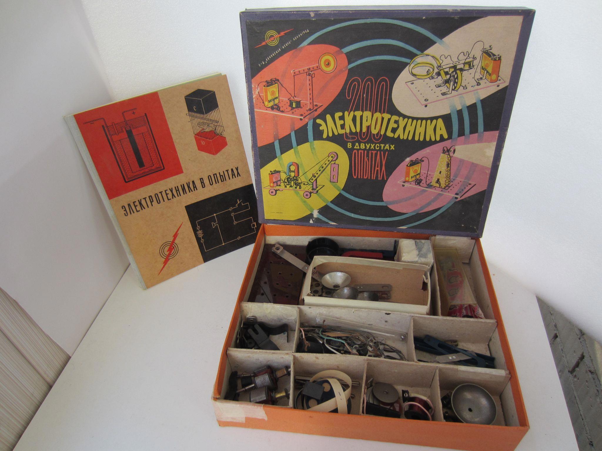 А еще был подобный набор с пластиковой емкостью для электролита, пластинами из цинка и меди, графитовыми стержнями, чтоб еще и элемент питания сделать. Вот вроде бы такой.
