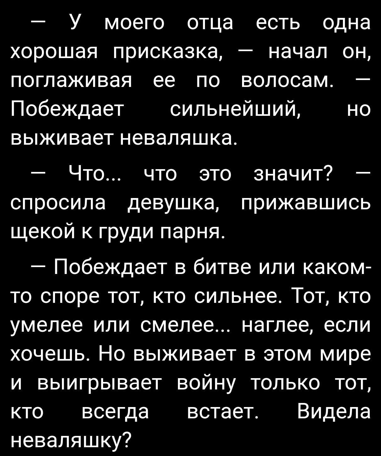 Не ошибка ли ? Во всех книгах было "Выживает сильнейший, а побеждает неваляшка".