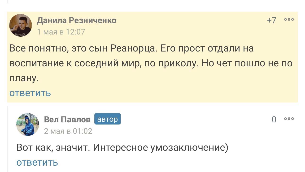Все понятно, это сын Реанорца. Его прост отдали на воспитание к соседний мир, по приколу. Но чет пошло не по плану.