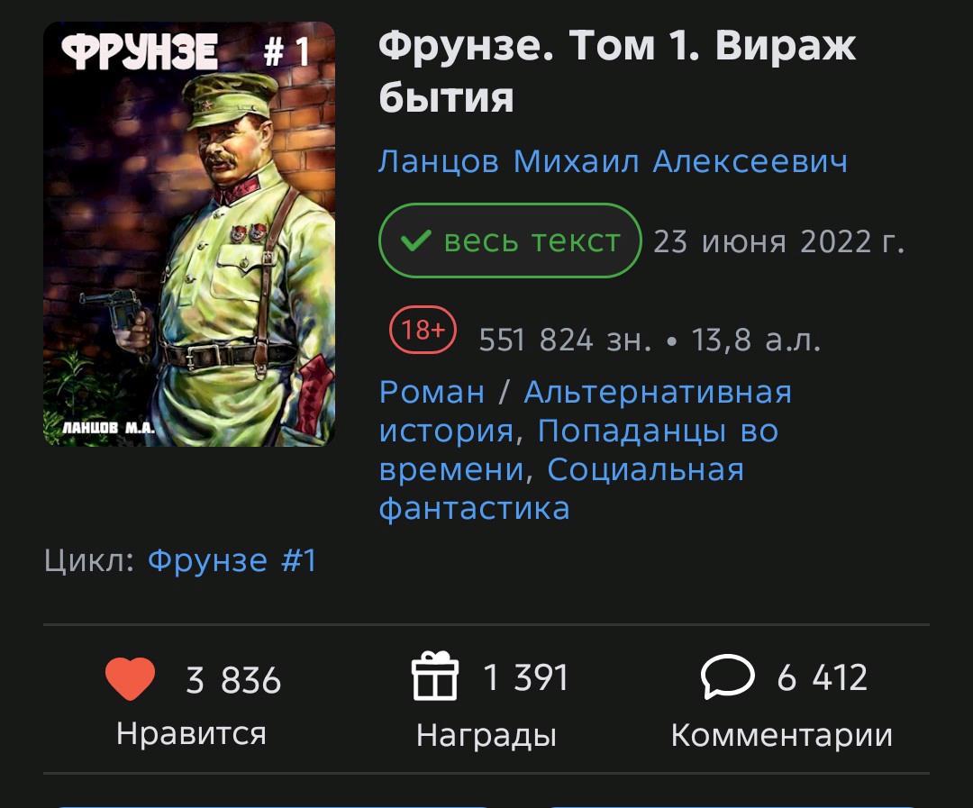 P.s. Как много читавший на АТ дам один непрошеный совет - что бы книга пользовалась популярностью нужно регулярно выкладывать проды. Как сказал мне один ваш коллега с АТ - по его информации большинство попурных авторов заранее пишут от одной до трёх книг, для регулярной выкладки глав и поддержания интереса.