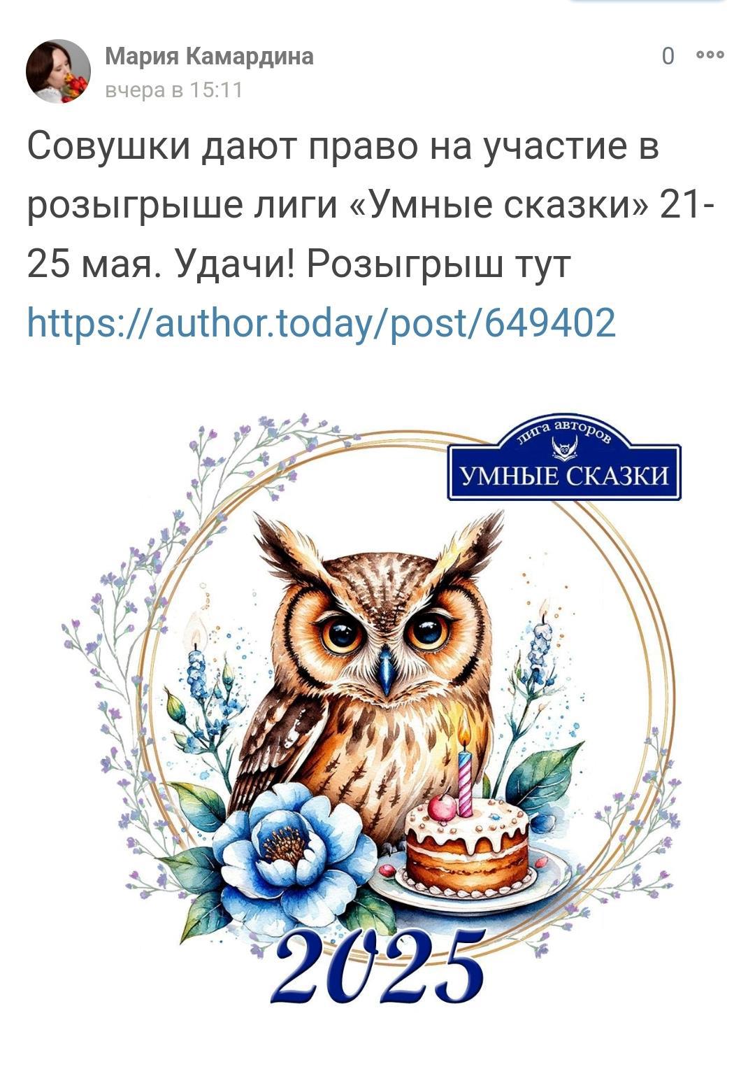 Написалa комментарий к посту Лотерея "Ситцевая сова 2025" начинается!