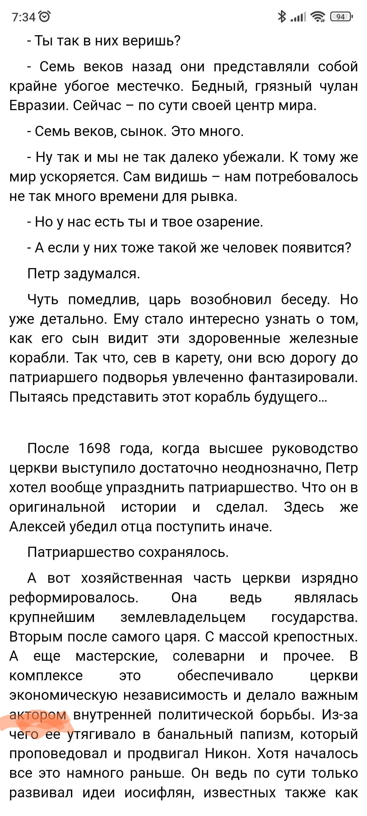 Внук Петра очень впечатлило, прочитал первые две книги. Понравилось как вы работаете с историческими материалами, хотелось бы увидеть от вас, что по древнему Риму если конечно вам нравится этот период) Спасибо за приятные вечера за книгой.
