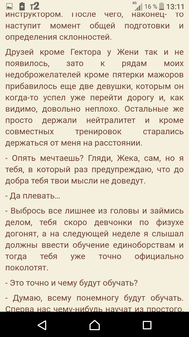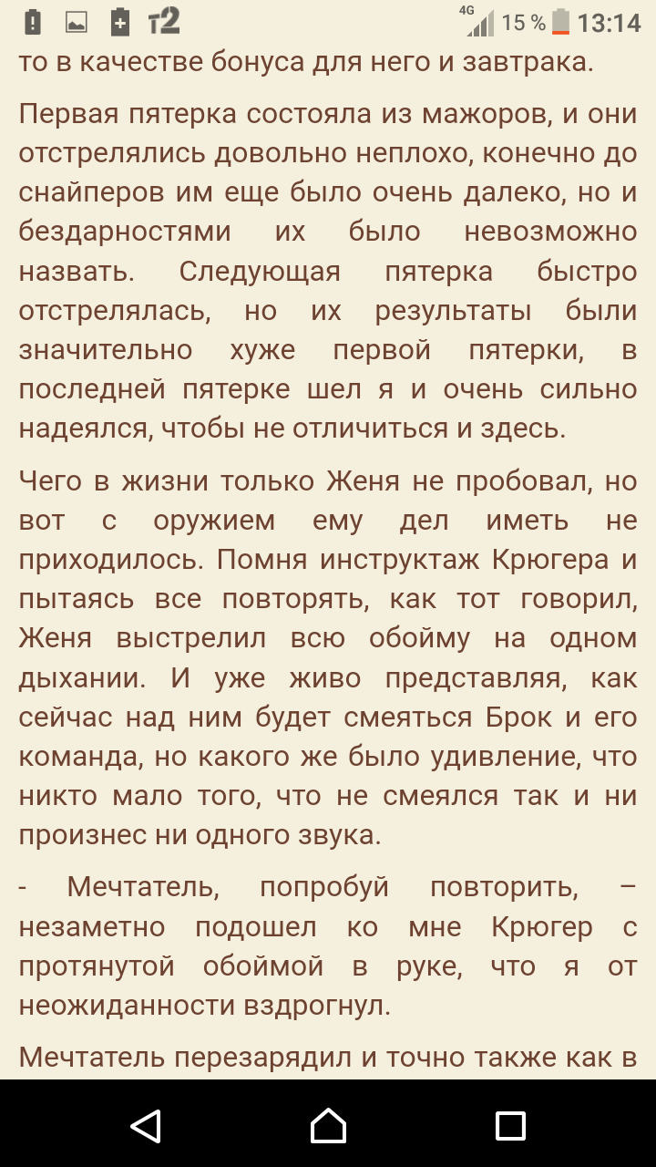 Описание действий героя великолепное. Нет того геройство, как пишут многие. Мол получил силу и магию и всё, типо крут. Нет. Такого, по крайней мере пока, вы тут не найдёте. Описываются страхи и переживания героя именно за свою жизнь! Отходняк в виде мандража и слабости в коленях после битв на грани смерти. Герой старается получить новые знания и возможности, что бы не просто стать сильным и непобедимым, а именно для того, что-бы выжить. Что-бы в очередной раз не оказаться при смерти и не получить смертельную рану.