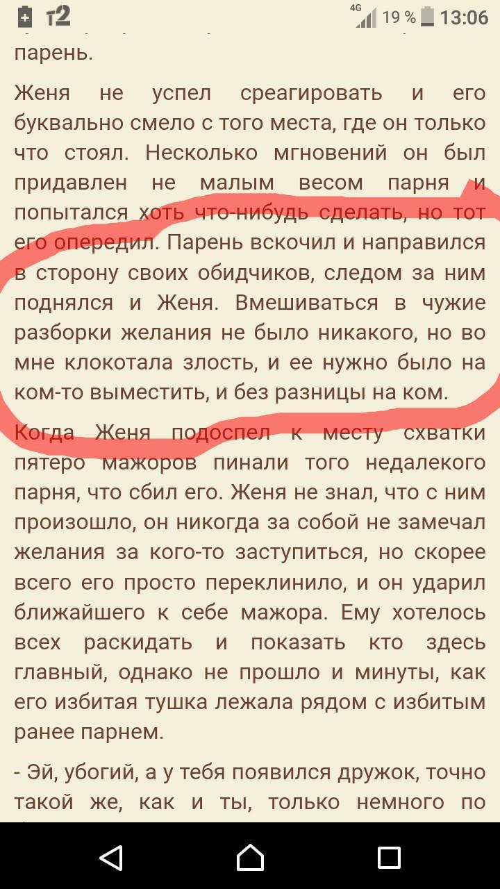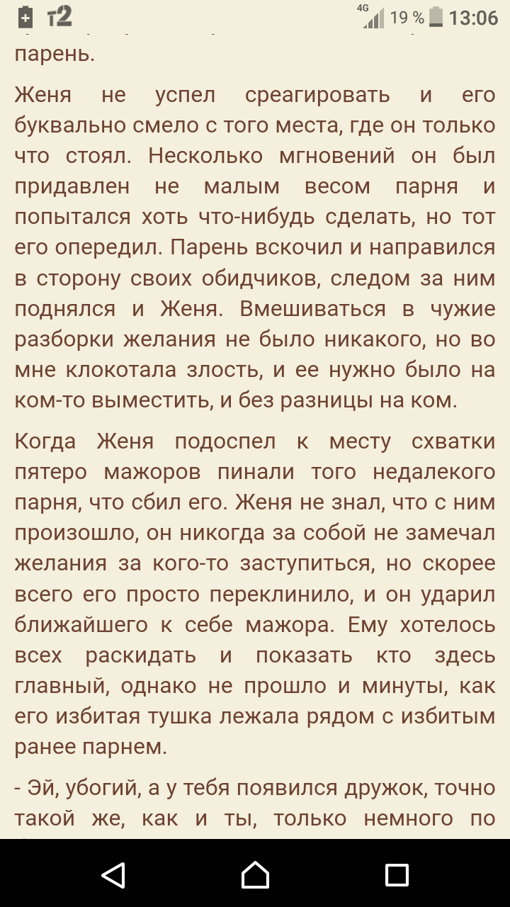 Давольно очень сильно не понятно от кого идёт данное повествование. То ли автор является свидетелем описанных событий, но тогда от чего присутствует местоимение "Я"? То ли автор и является тем самым Женей, тогда не должно присутствовать местоимение "Он" обращенное к главному герою от лица автора. Судя по аннотации идея очень не плоха, но вот выше описанный факт портит всё впечатление и отбивает желание продолжать чтение далее 23% первой главы.
