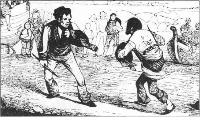 Напомню, наваха это не оружие аристократии, а криминала, матросов, "приблатненных горожан". Не строит там искать утонченного фехтования с идеями - на его укол я отвечу ударом сверху по его клинку, наваха закроется и отрежет ему пальцы". Все куда проще.