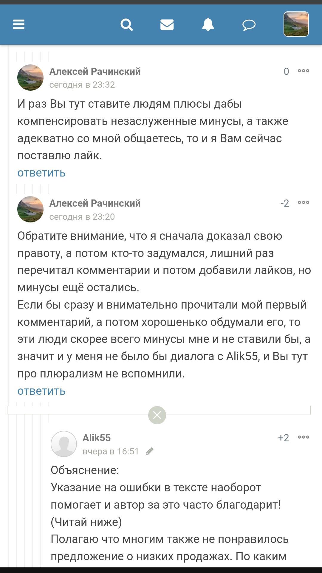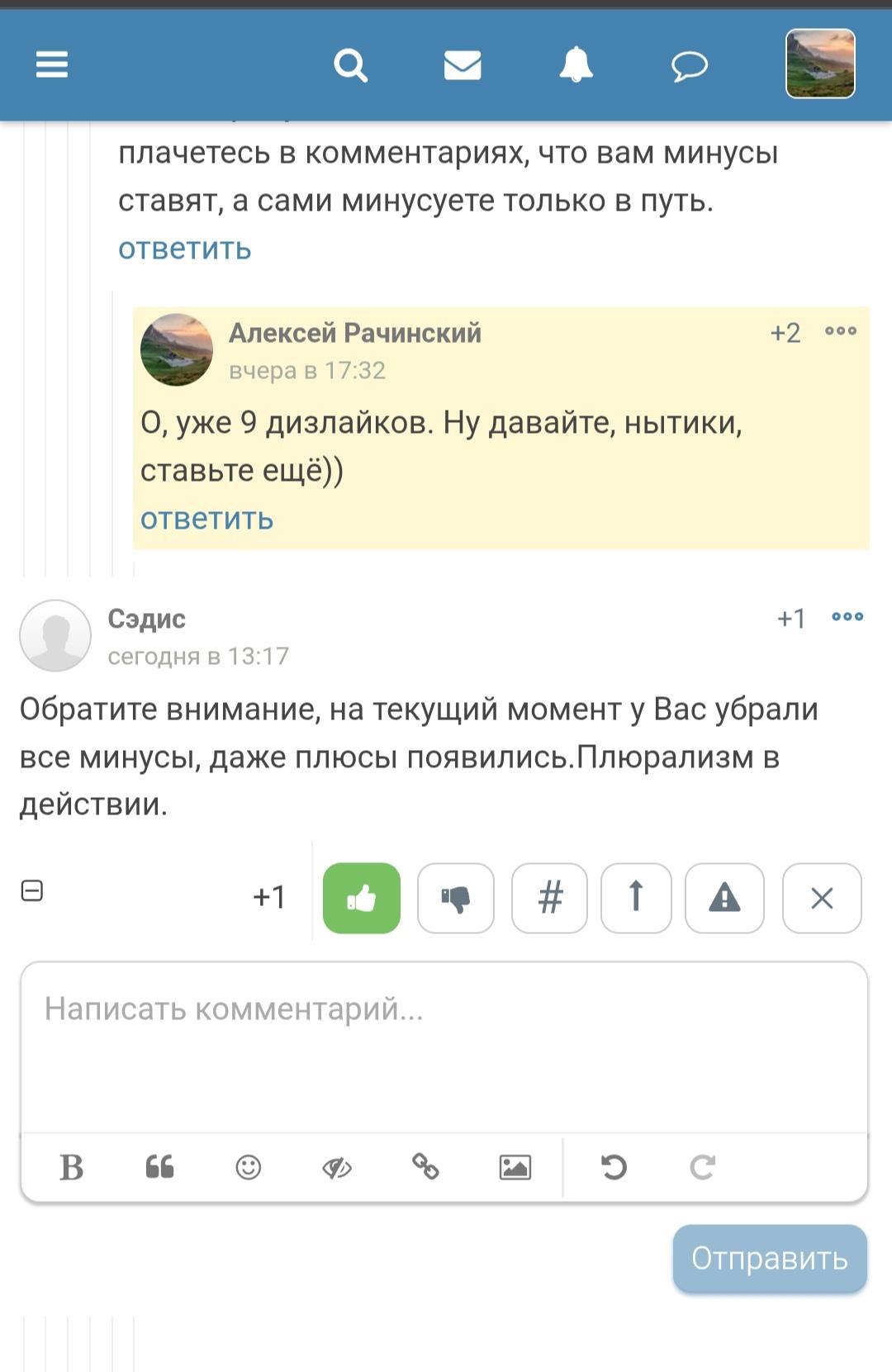 Если бы сразу и внимательно прочитали мой первый комментарий, а потом хорошенько обдумали его, то эти люди скорее всего минусы мне и не ставили бы, а значит и у меня не было бы диалога с Alik55, и Вы тут про плюрализм не вспомнили.