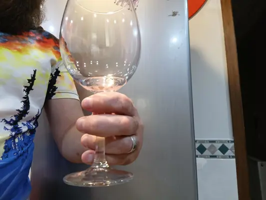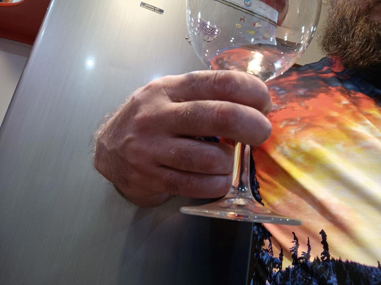 Вот, постарался масимально ракурс воспроизвести. В этом ракурсе выглядит крипово, но это _реально_ тот же самый хват, как я держал бокал на предыдущих фотках (рука только в запястье немного вывернута, чтобы угол съёмки обеспечить).
