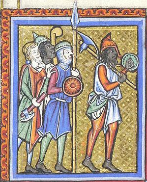 Описание этой миниатюры XIII века утверждает, что man on far right carries what appears to be an early bardiche.