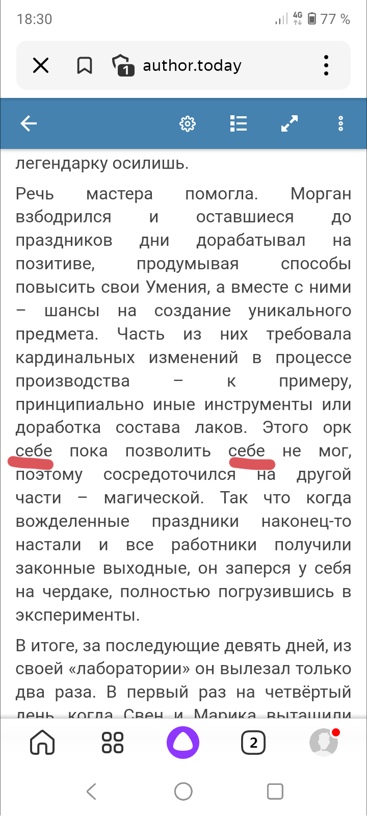 Саймон Грэй, я позволил себе обратить внимание на небольшую тавтологию, или как это называется. У вас необычный и на мой взгляд свежий сюжет, но некоторых авторов бросают читать из-за таких дублей повторов. Это 13 глава текст ближе к середине страницы. Читаю с удовольствием. Добра и успехов вам в этом деле.