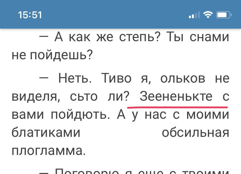 В слове «зеененькИе» вероятно И вместо Т должна быть.